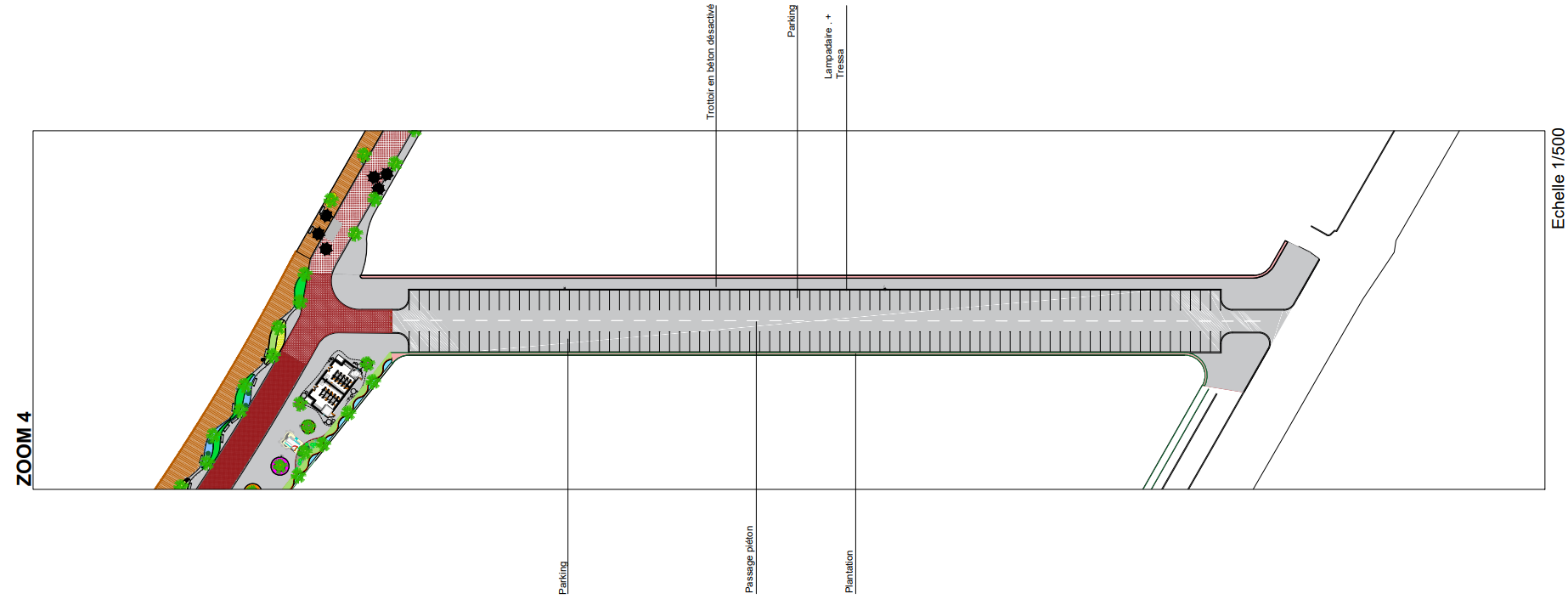 Présentation Zoom 2 du premier plan paysager. Cette partie sera dotée d'une promenade maritime, de places réservées aux food trucks et d'un parking.