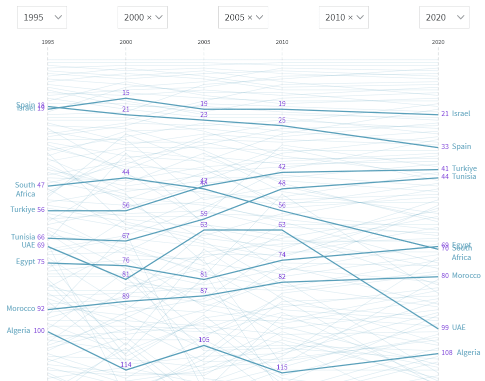 Un pays avec un indice de complexité économique élevé est considéré comme plus compétitif que celui avec un indice faible, car il a une capacité à produire et à exporter des produits plus avancés, qui ont une plus grande valeur ajoutée et sont plus difficiles à imiter par d’autres pays.