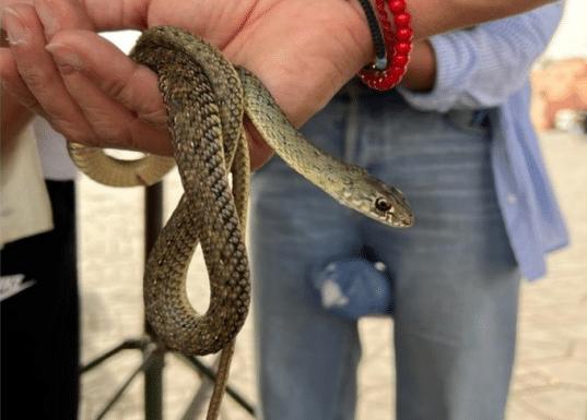 - 28 serpents (ou couleuvres) de Montpellier (Malpolon Monspessulanus ), légèrement venimeux. Il s’agit de l'espèce exhibée généralement aux touristes pour prendre des photos ;