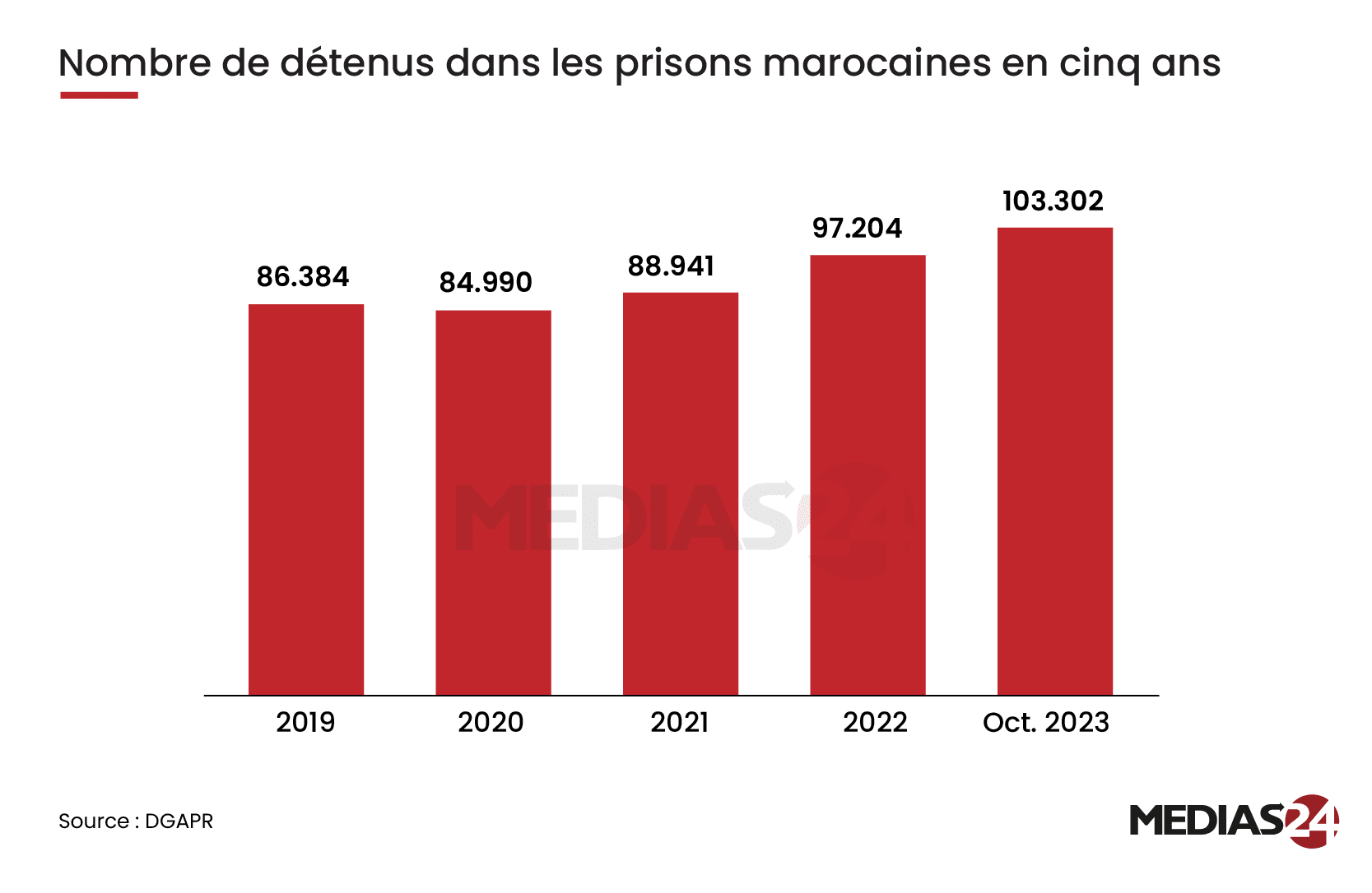 En d’autres termes, le Maroc compte 272 détenus pour 100.000 habitants. Un chiffre qui place le Maroc en tête des pays voisins tels que la Tunisie (196 détenus pour 100.000 habitants), la Mauritanie (57/100.000 habitants), l’Algérie (217/100.000 habitants), ou encore l’Espagne (113/100.000 habitants), la France (109/100.000 habitants) et l’Italie (99/100.000 habitants).
