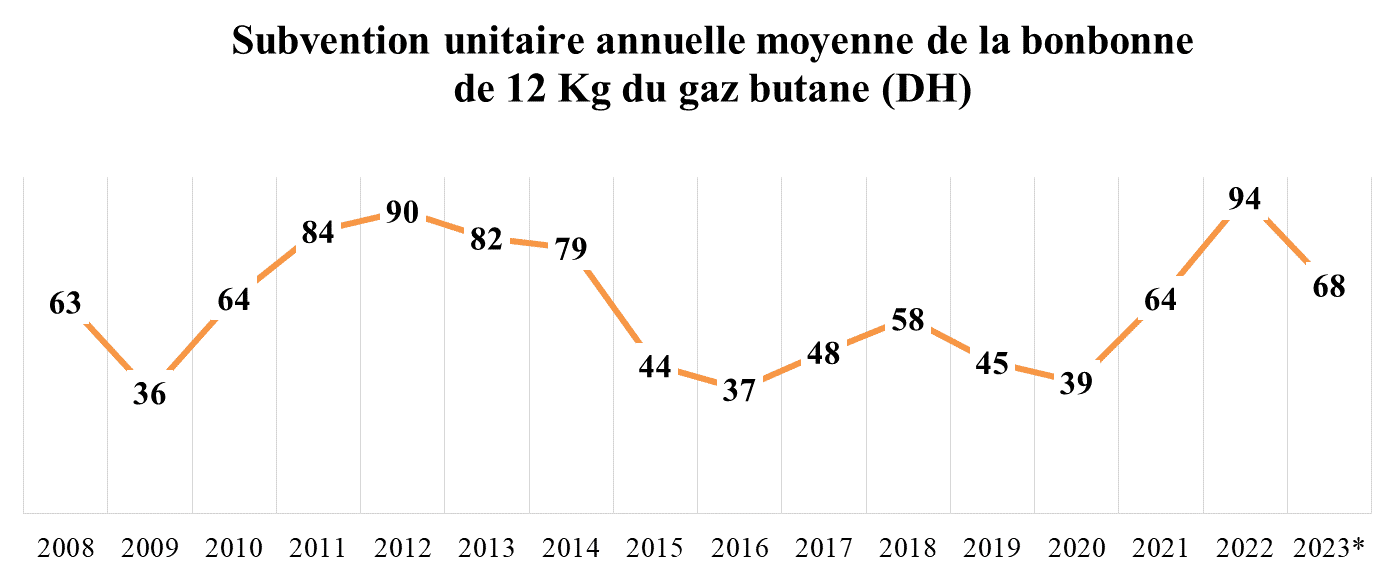 La charge de compensation unitaire moyenne par bonbonne de 12 kg s’est élevée à 68 DH pour les huit premiers mois de l’année 2023, totalisant près de 11,4 MMDH jusqu’au mois d'août, contre un total annuel de 21,8 MMDH en 2022.