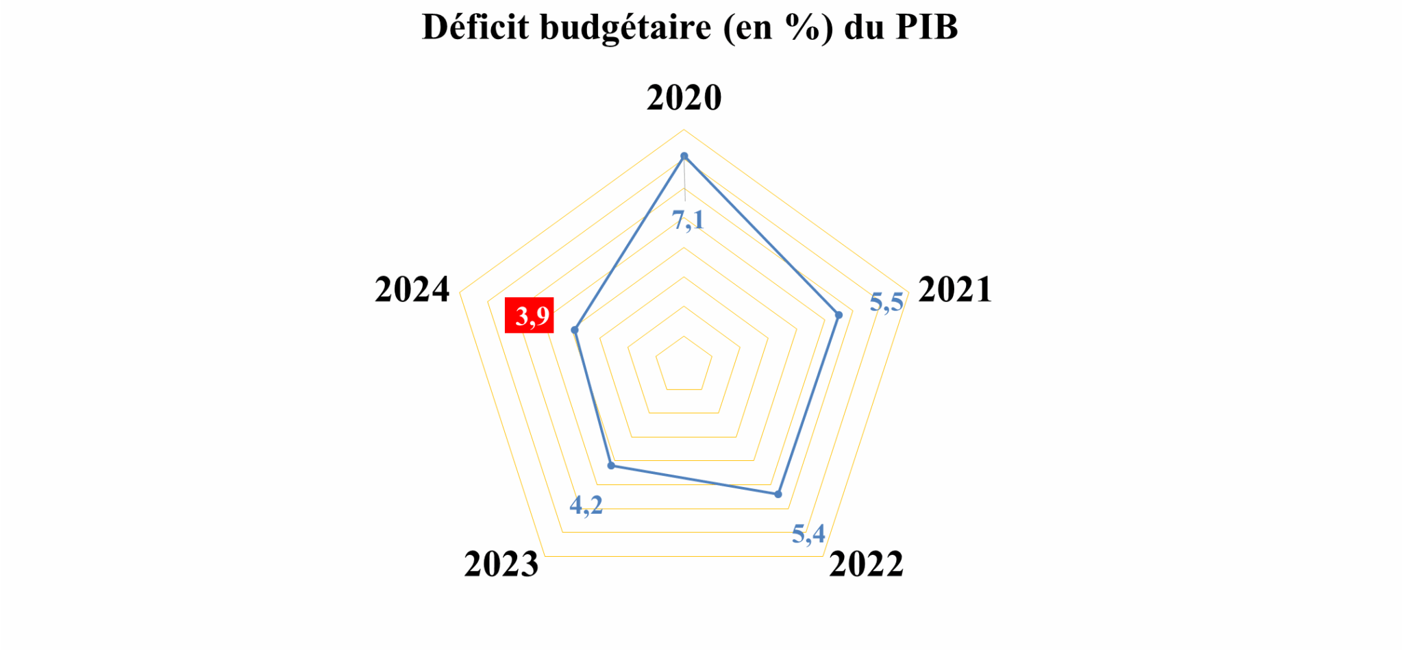 Pour rappel, le déficit budgétaire avait atteint un pic de 7,1% du PIB en 2020, sous l’effet des dépenses exceptionnelles liées à la pandémie. Depuis, une trajectoire descendante a été observée :