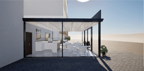- Des toits légers (bois, plâtre…) avec façades en verre :